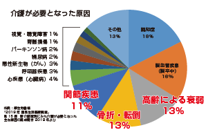 右の図のように介護が必要になった約4割の方が運動機能の低下にあります。